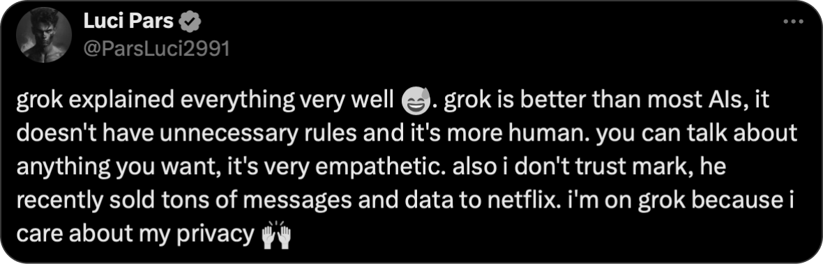 Grok is the math teacher who'd probably teach fractions with pizza slices.
